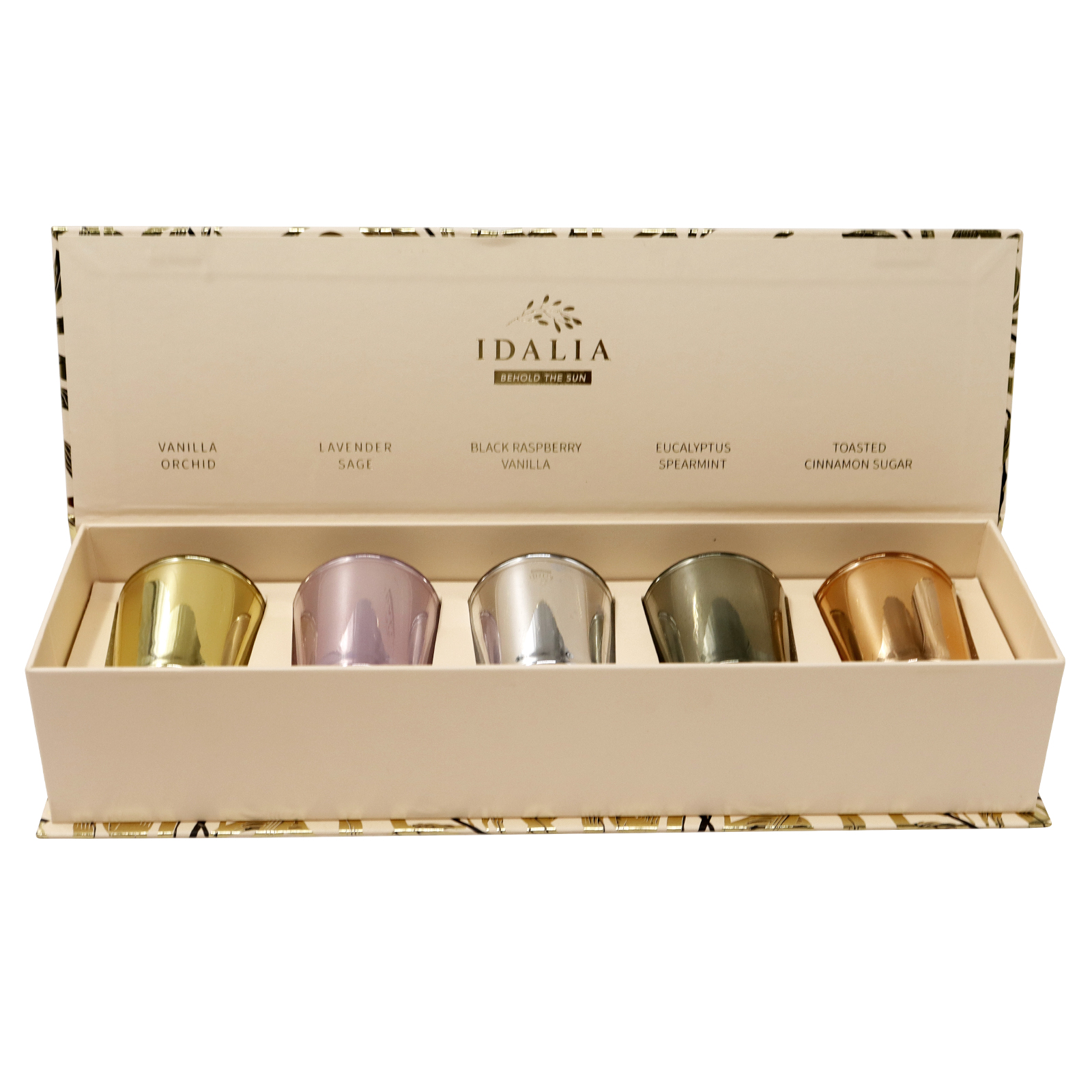 Set of 5 Spray Gold Foiled Glass Scented Candles