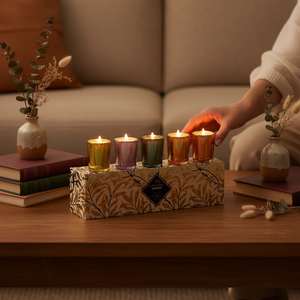 Set of 5 Electroplated Glass Scented Candles